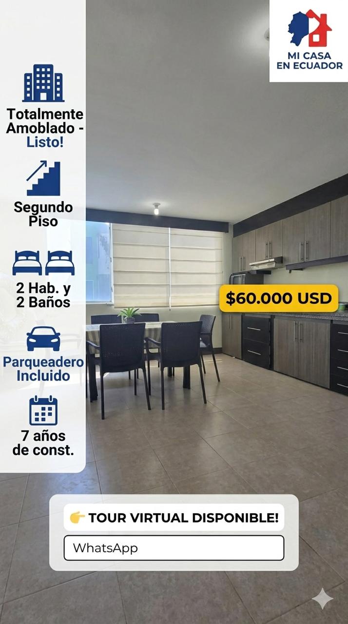 Consta de 2 dormitorios, 2 baños, parquedero, tambien cuenta piscina, zona bbq en su area social.